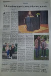 Für die Broschüre „Gang der Erinnerung“ hat die Aktivität 2023/24 einen Artikel über Bad Oldesloer Gaststätten und Hotels im Nationalsozialismus beigetragen; dazu hatten wir die Historikerin Dr. Sylvina Zander eingeladen. Die LN berichteten über den Empfang für alle beteiligten Schulen zur Veröffentlichung der Broschüre am 13. September 2024.